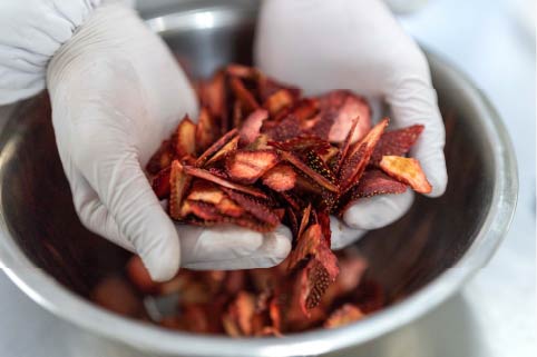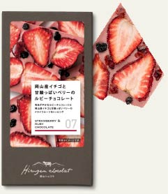 色鮮やかなルビーチョコレートに岡山産イチゴと甘酸っぱいベリーのドライフルーツをトッピング。