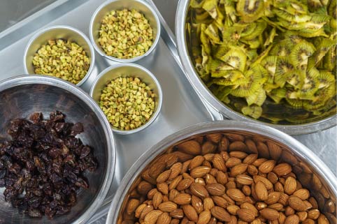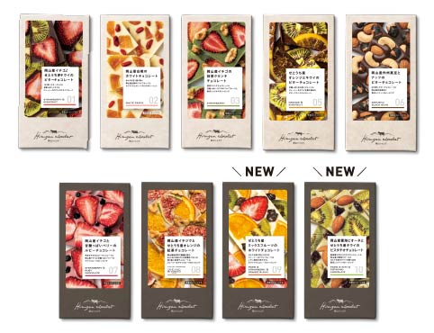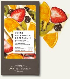 使用しているドライフルーツは、岡山県内をはじめとするせとうちエリアで育てられた季節の果物。丁寧に乾燥させ、旬のおいしさをギュッと閉じこめました。クリーミーなチョコレートと甘酸っぱく味わい豊かなドライフルーツとの組み合わせをお楽しみいただけます。