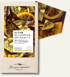 甘酸っぱくほろ苦いオレンジとジューシーなキウイを敷き詰めたビタークランチチョコレート。