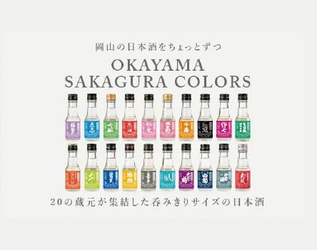 SAKAGURA COLORS岡山県酒造組合と県内の蔵元と連携し、100mlのミニボトルで、岡山県内各地の地酒を楽しめる商品を企画・開発。雄町米や朝日米などを使用し、岡山ならではの地酒の魅力拡大を目指しています。
