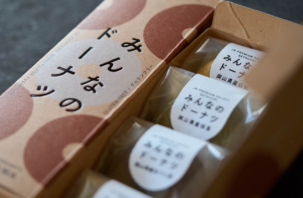 「みんな一緒においしく笑顔あふれる時間を過ごしてほしい」そんな想いから生まれたのが、アレルギー特定原材料8品目(※)不使用・グルテンフリーの「みんなのドーナツ」です。岡山県産の素材を使い、小麦・卵・乳製品を使用せず、米粉・豆乳・おからパウダーなどでしっとりと焼き上げました。