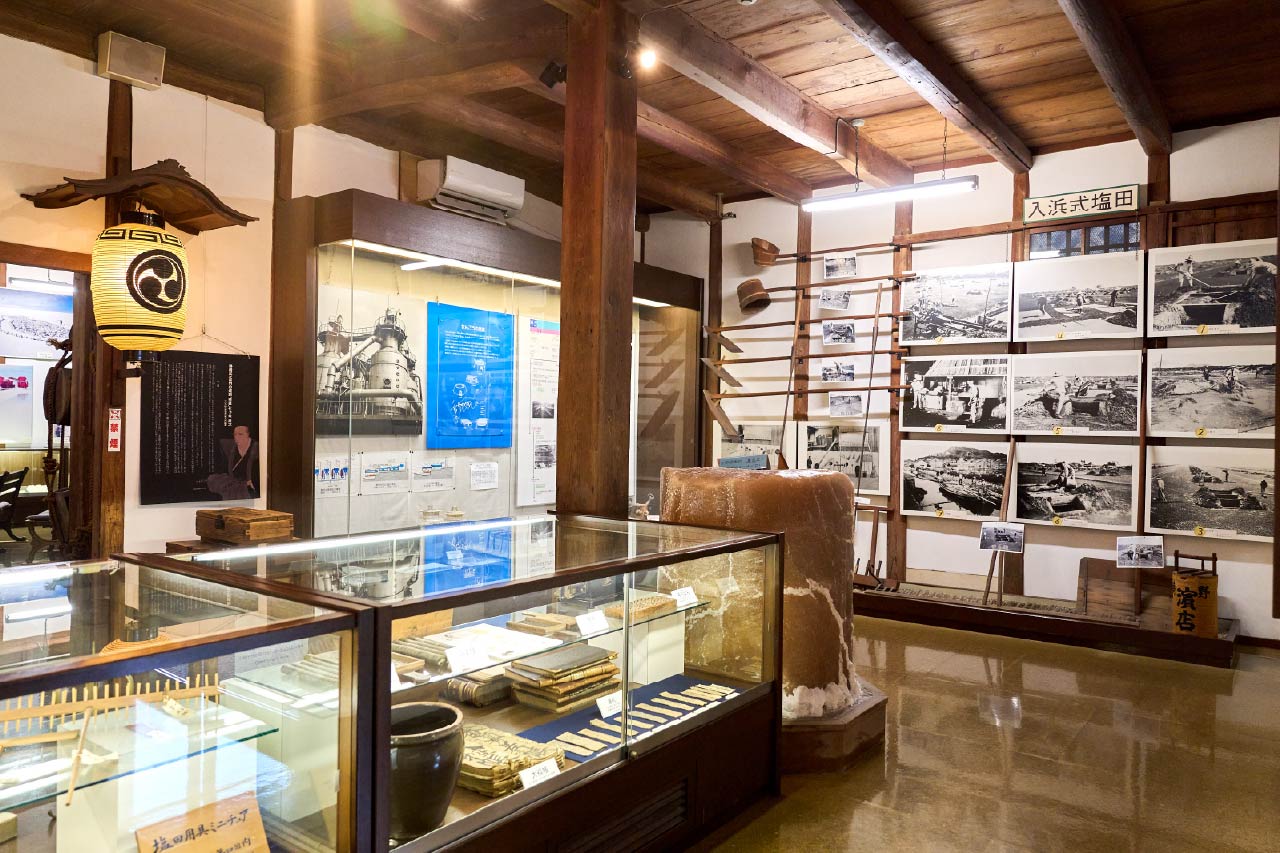 旧野﨑家住宅・野﨑家塩業歴史館では、塩づくりに関する当時の貴重な資料や江戸時代からの民具などを展示。