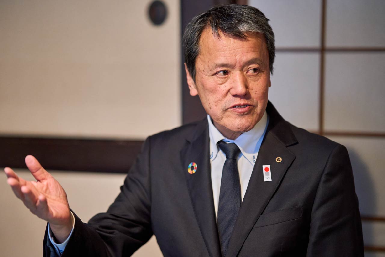 児島商工会議所の専務理事・太宰 信一さん。「『塩結び』という言葉には『塩を介してさまざまな人・商品・地域のご縁を結ぶ』という意味があり、塩(エン)と縁を掛けた造語です」