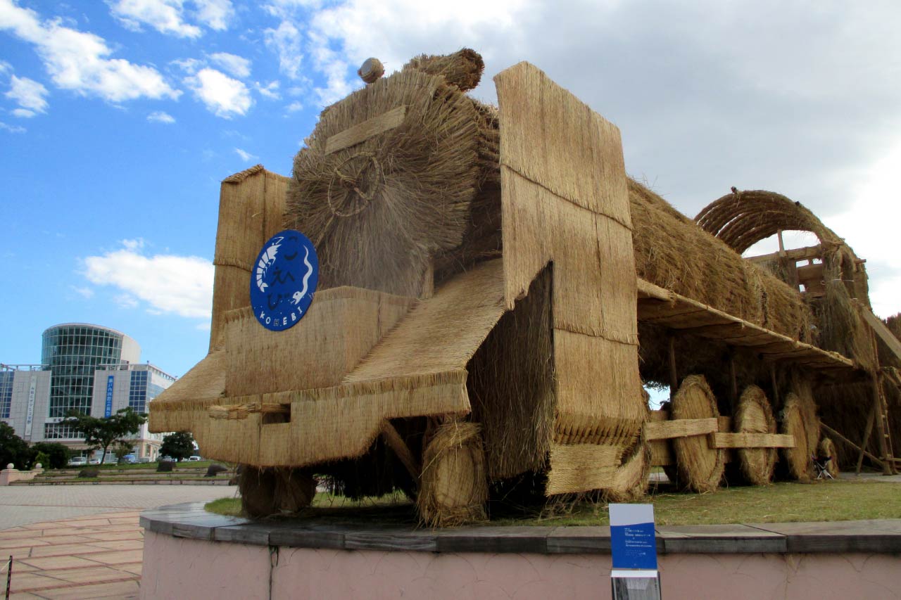 2013年に制作した「機関車わらアート号」(画像提供/瀬戸内こえびネットワーク)