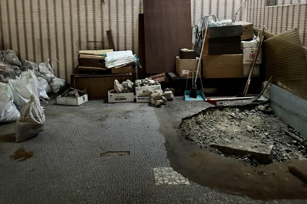 かつて宇高連絡船が華やかに運航していた頃、この銭湯は鉄道関係者や船員たちで賑わった場所でした。建物の所有者は2013年から芸術祭を支えてきた地元の方で、斉藤さんが訪れた際、立ち入ったガレージ奥で“お風呂のような構造物”を発見したことがきっかけとなりました。
