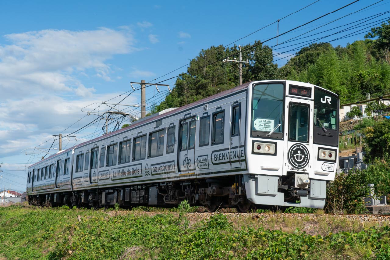 副駅長・井上さんの作品は、観光列車「ラ・マルせとうち」を描いたこちら。