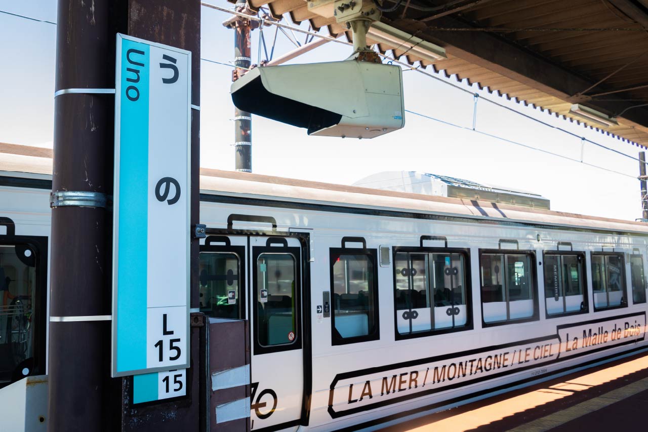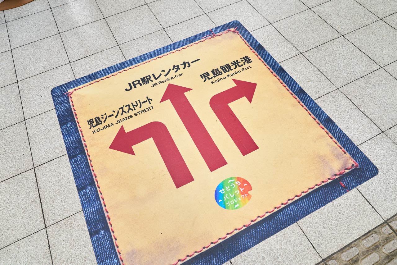 改札を出た場所には、観光港やジーンズストリートへ向かう案内表示も設置して旅人をやさしく誘導。こうした旅人を迷わせない地道な工夫も、駅を訪れた人へ安心感を届ける大切なおもてなしのひとつです。