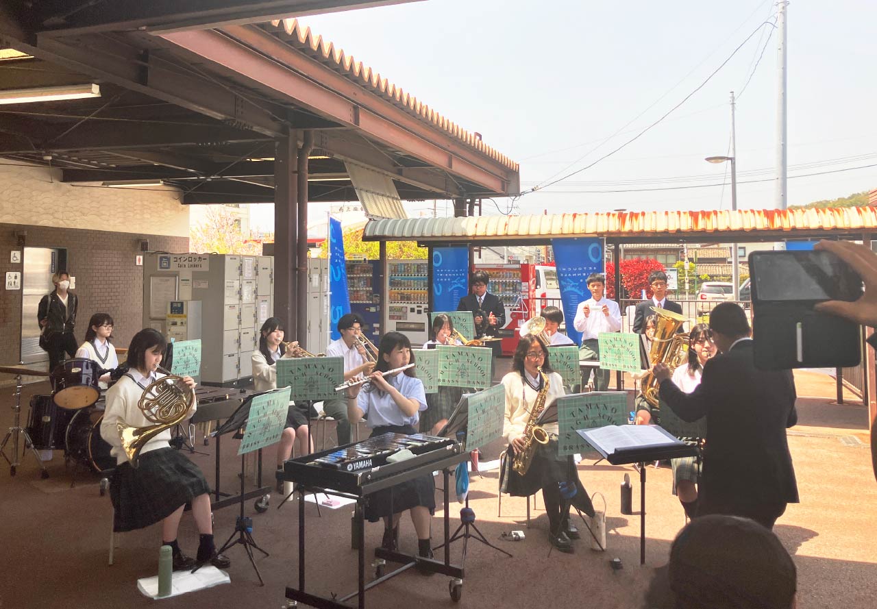 観光列車「ラ・マルせとうち」到着時には、地元・岡山県立玉野高等学校の吹奏楽部による演奏が行われた。