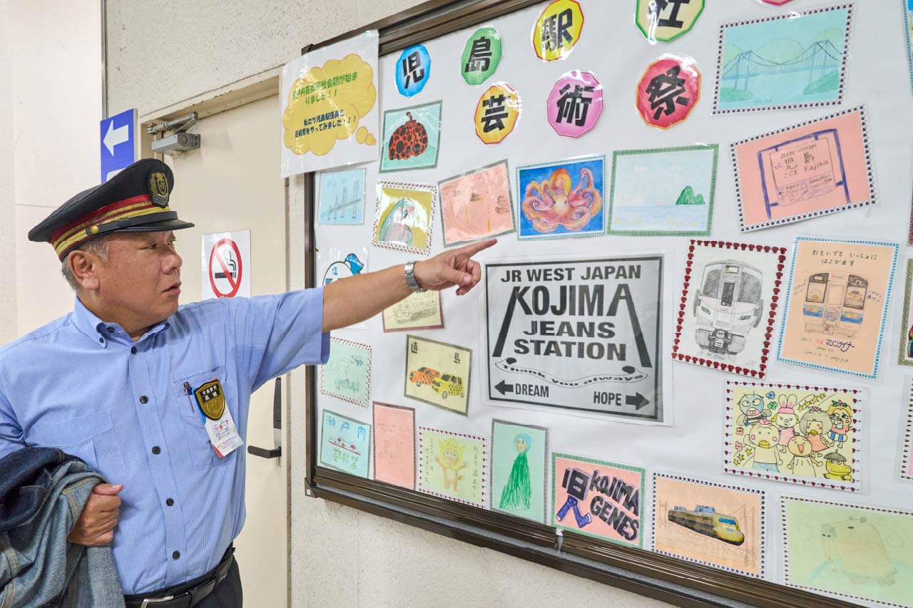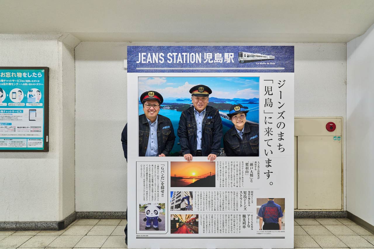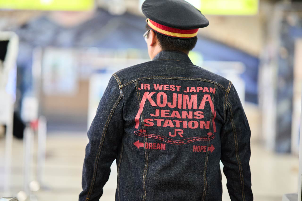 児島駅では、ジーンズの町・児島を象徴するこのイベントに合わせ、駅員全員がジーンズの制服でお出迎え。児島らしい装いで来訪者を迎えるその姿は、地域と歩む、駅の象徴にもなっています。