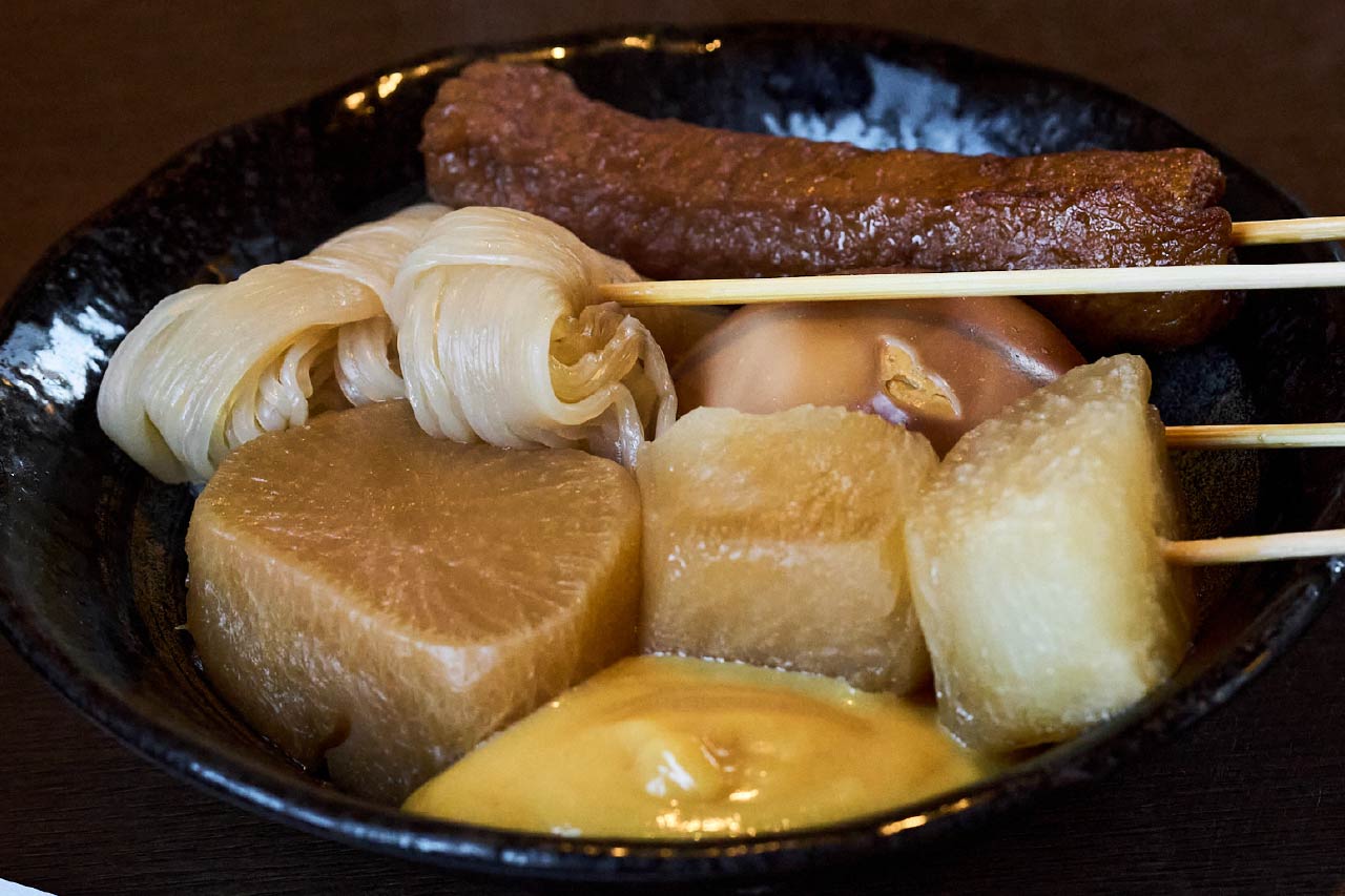 出汁には北海道産の昆布の中でも、他店があまり使わない品種をあえて選ぶというこだわりも。その旨味のつまった出汁は、おでんでも味わうことができます。