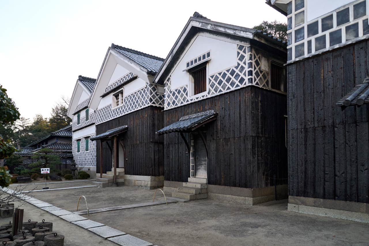 この通りの象徴ともいえるのが、旧野﨑家住宅。江戸時代後期、塩田を築いた野﨑武左衛門の邸宅で、約3,000坪の敷地には主屋を中心に6棟の土蔵が並び、庭には茶室も備えられています。往時の繁栄を今に伝える空間で、土蔵の中では塩づくりの資料や、江戸時代の民具なども展示されています。