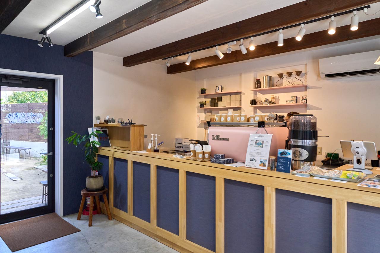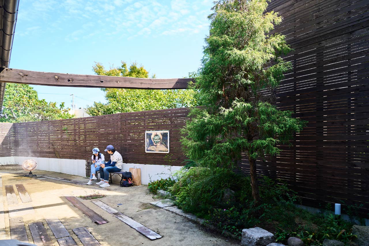 このほかにも、藍を焙煎したほうじ茶風味の「藍茶」や、倉敷市で桃農園を営む竹中農園の桃をまるごと使用した「岡山県産白桃フラッペ(数量限定)」など、季節ごとに楽しめるメニューがそろっています。ドリンク片手にストリートを散策するのもよし、お店の奥に設けられた縁側やテラス席で、ゆったりと過ごすのもおすすめです。