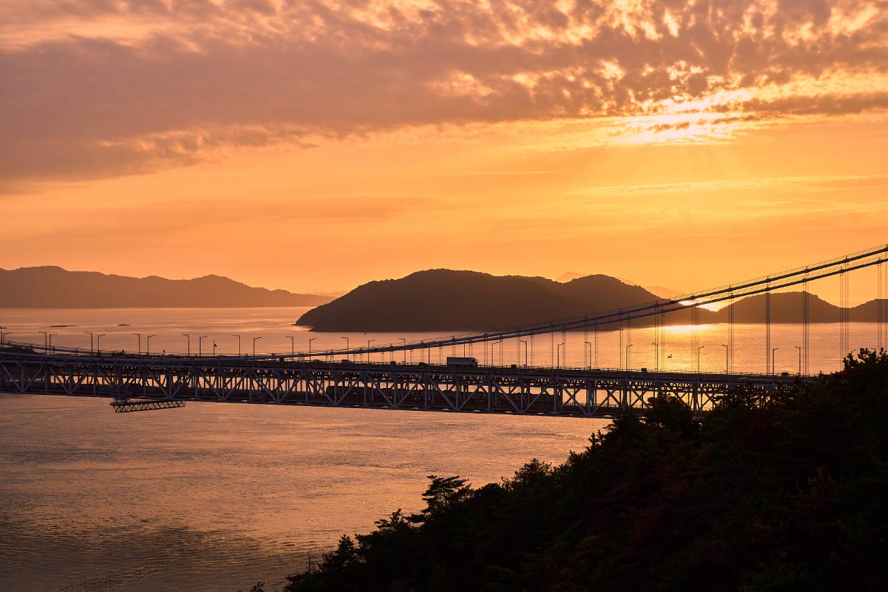 藍に染まる街で“ジャパンデニム”を探訪 > - episode 4 鷲羽山レストハウス(瀬戸大橋の夕景)