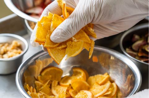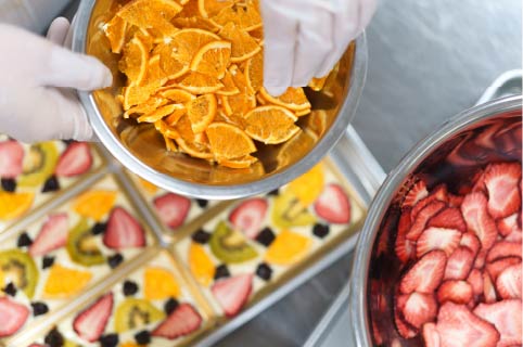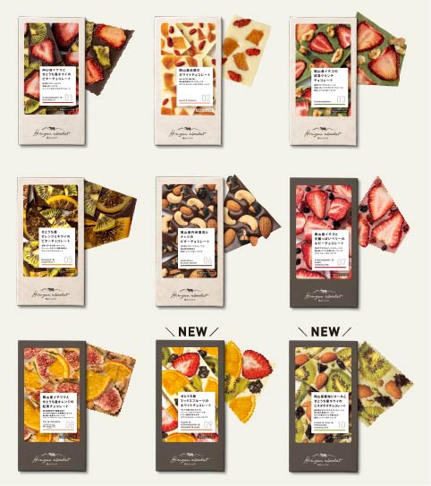 使用しているドライフルーツは、岡山県内をはじめとするせとうちエリアで育てられた季節の果物。丁寧に乾燥させ、旬のおいしさをギュッと閉じこめました。クリーミーなチョコレートと甘酸っぱく味わい豊かなドライフルーツとの組み合わせをお楽しみいただけます。
