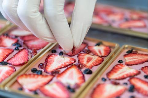 色鮮やかなルビーチョコレートに岡山産イチゴと甘酸っぱいベリーのドライフルーツをトッピング。