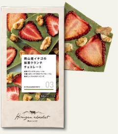 抹茶クランチチョコレートに甘酸っぱいイチゴのドライフルーツと香ばしいクルミをトッピング。
