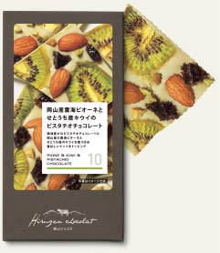 蒜山ショコラは、クリーミーなチョコレートの上に、せとうち産のドライフルーツや岡山産素材を散りばめた贅沢ショコラバー。