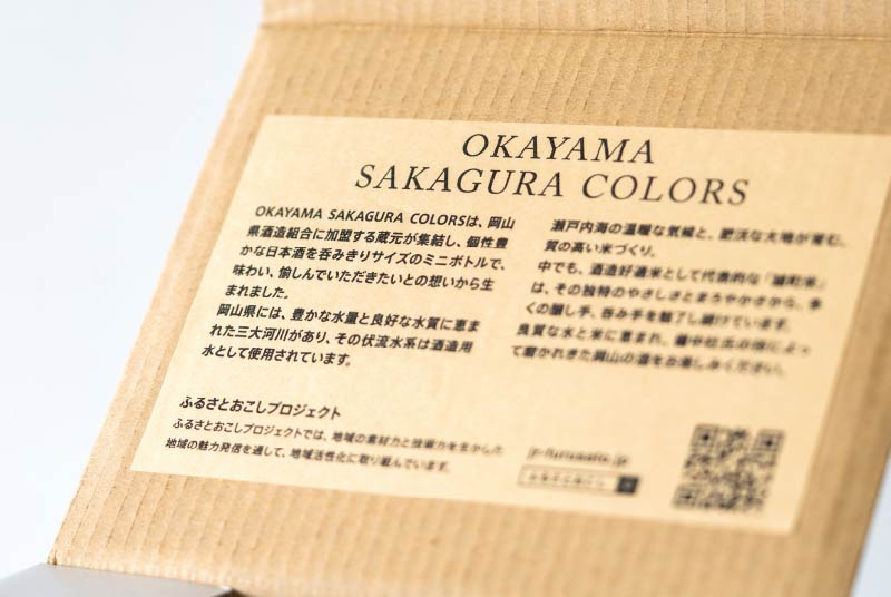 OKAYAMA SAKAGURA COLORSは、岡山県酒造組合に加盟する20の蔵元が集結し、それぞれの個性豊かな日本酒を呑みきりサイズのミニボトルで、味わい、愉しんでいただきたいとの想いから生まれました。